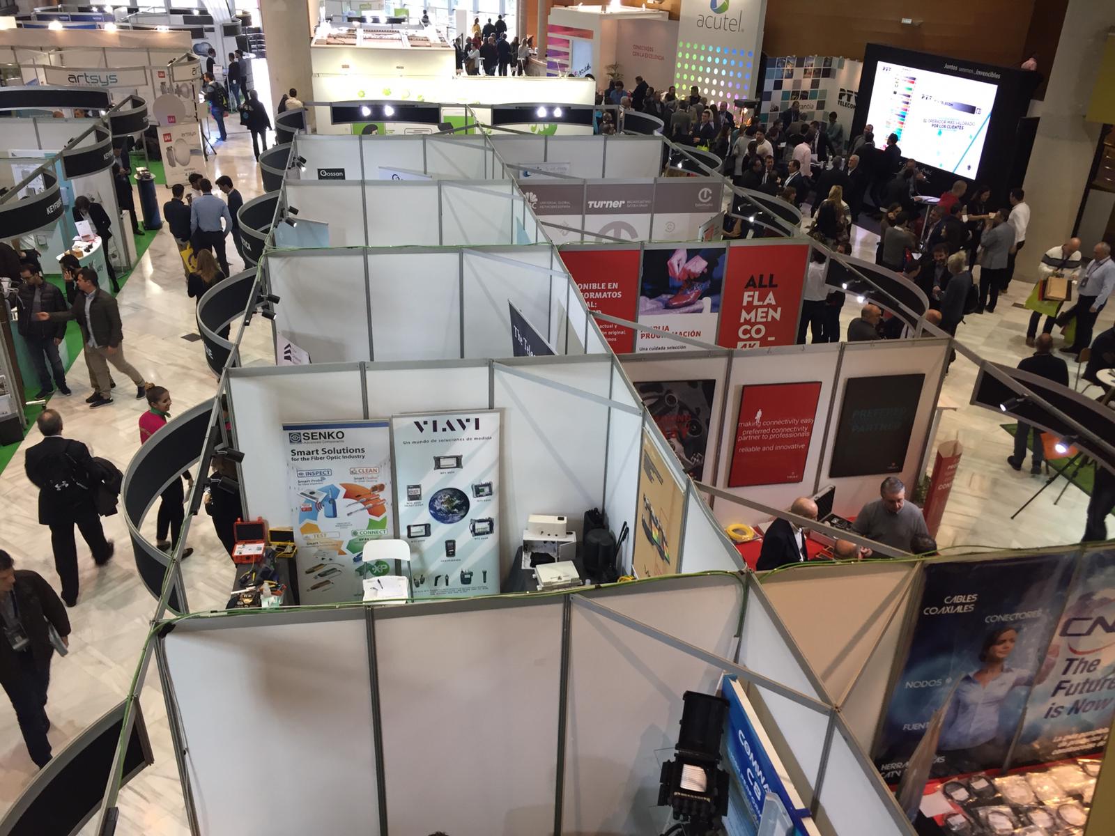 Un total de 120 stand pertenecientes a casi un centenar de empresas se reparten entre las dos plantas del Palacio granadino dedicadas a la muestra. Los expositores han coincidido en destacar la importancia de este evento en el que tienen la oportunidad de mantener un contacto directo con el cliente, muchos de ellos, los operadores de telecomunicaciones locales pertenecientes a la asociación organizadora.